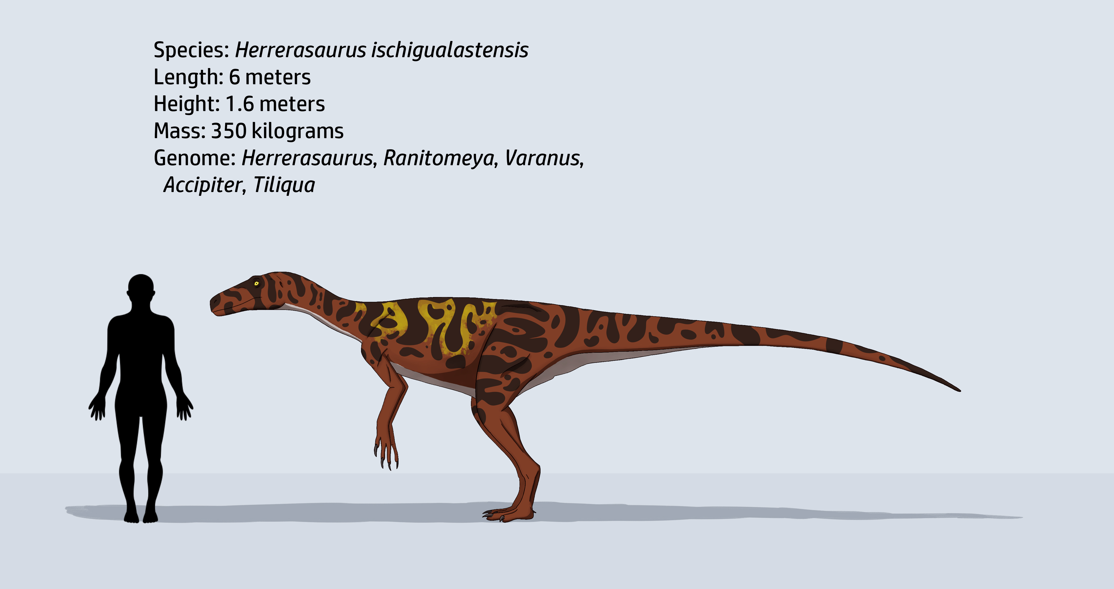 It is a member of the Herrerasauridae a family of similar genera that were among the earliest dinosaurs. Herrerasaurus was a carnivoreIt lived in the Triassic period and inhabited South AmericaIts fossils have been found in places such as Argentina and Argentina. Its name means Herreras lizard after the rancher who discovered the first specimen.